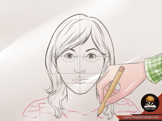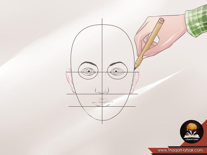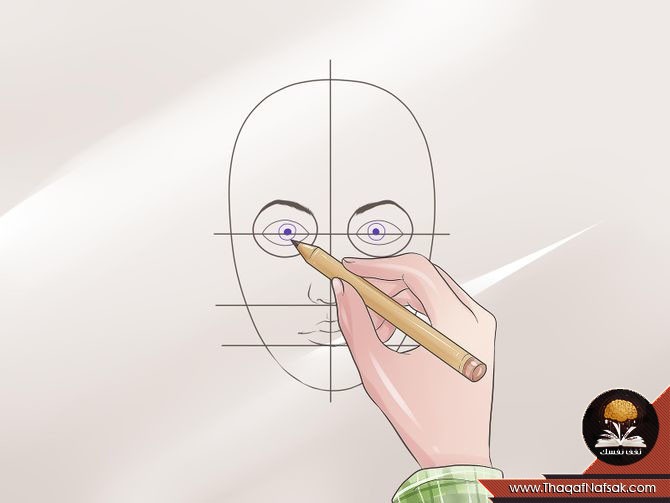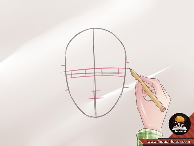 2. رسم الخطوط لتحديد مركز الوجه ومكان العينين.