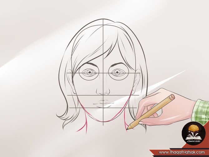 3. رسم خطوط لتحديد شكل الخدين والفك والذقن .