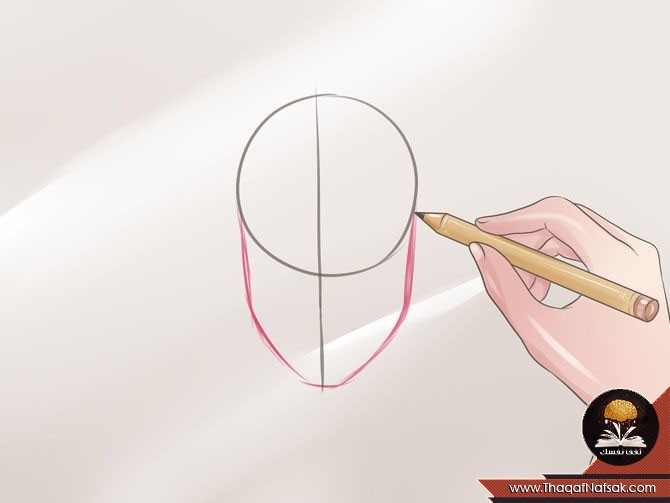 2. رسم خط من الأعلي حتي الأسفل والذي سيحدد الذقن فيما بعد ( هذا الخط يقوم بتحديد الوجه عموماً )