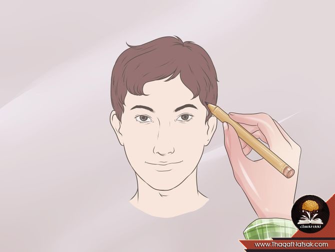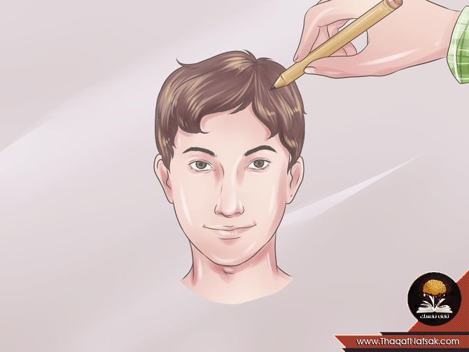 8. رسم الشعر : تأكد من رسم مفرق الشعر في خارج حدود الرأس .